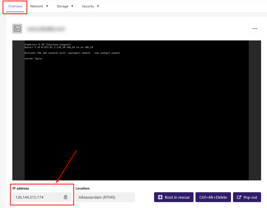 4. In the "Overview" tab, locate the field labeled IP address. This is your VPS’s unique IP.
