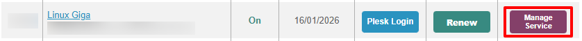 Through the myTophost panel, locate the hosting package for which you need to change the password and then click Manage Service.