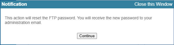Please note that this action resets the FTP password, and you will receive new login credentials.