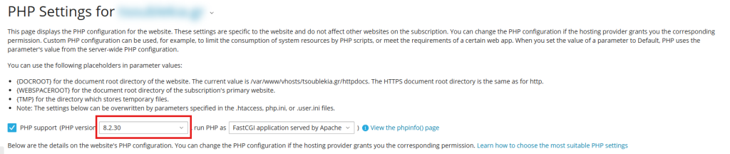 Σε περίπτωση που επιθυμείτε να αλλάξετε την έκδοση της PHP, ακολουθήστε τα παρακάτω βήματα: