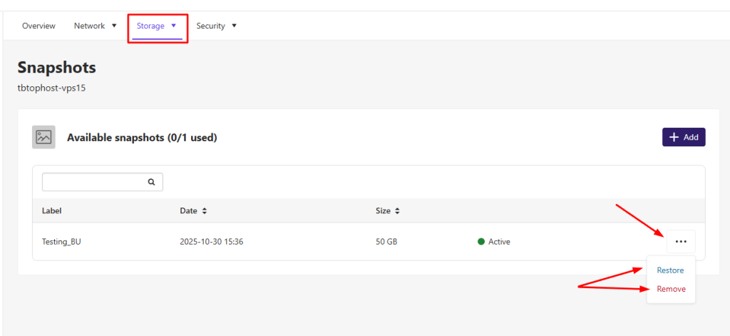 Μπορείς να διαχειριστείς τόσο τα χειροκίνητα δημιουργημένα στιγμιότυπα, όσο και τα αυτόματα backups που δημιουργεί το σύστημα.