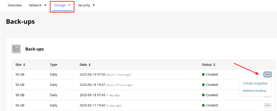 Μπορείς να δημιουργήσεις και να διαχειριστείς αντίγραφα ασφαλείας (backups) του VPS σου μέσα από το περιβάλλον διαχείρισης του Papaki. Τα αντίγραφα ασφαλείας λαμβάνονται σε μορφή στιγμιότυπου (snapshot) και αφορούν ολόκληρο τον server, όχι μεμονωμένα αρχεία ή φακέλους.