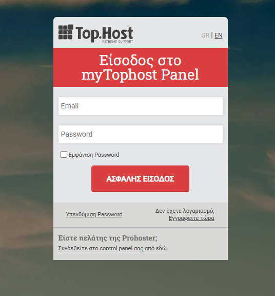 Σε περίπτωση που δεν είναι εφικτή η πρόσβαση στο myTophost panel, θα χρειαστεί να επικοινωνήσεις με το τμήμα υποστήριξης, ώστε να προχωρήσουμε σε επαναποστολή των στοιχείων σύνδεσης.
